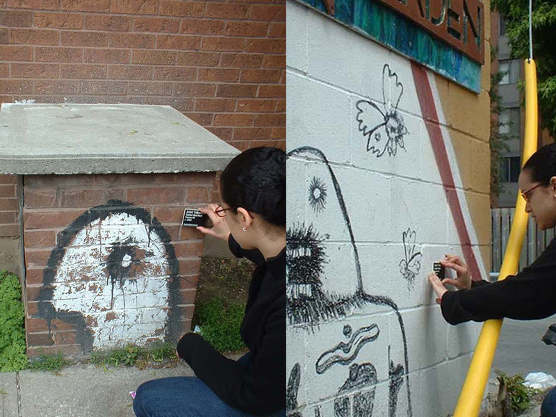 If graffiti were looked at as art rather than deformation of property, would the general public and authority figures be so concerned to remove it? The Graffiti Eradication Program created by the Toronto police in the summer of 2000 has a mission, which is to “decrease the crime, fear and disorder that the presence of graffiti brings to our streets”. Not all graffiti evokes fear, nor was that the intention of many graffiti artists. I believe that a lot of the fear occurs due to the spontaneity of the work and the anonymity of the artist. Generally, in an art gallery, a ‘tag’ that provides information about the piece and acknowledges the artist accompanies a work of art. My intention is to alter a specific site that contains graffiti, by placing something in it to change the context in which the graffiti is seen. I will select particular graffiti pieces throughout Toronto that make no reference to hate crimes, nor are gang related, and prepare a ‘tag’ specific to each piece to be attached to the site. This ‘tag’ will contain information about the piece of work; it will however, only serve as a minor intrusion to the space, because it will only be noticed if approached by someone for closer inspection. The ‘tag’ enforces the art aspect of the graffiti, creating a sense of authenticity, and it also lends to the space a sense of institutional significance and importance. The ‘tag’ legitimized the graffiti as art, giving the work and artist acknowledgement. Something Pretty Cozy
