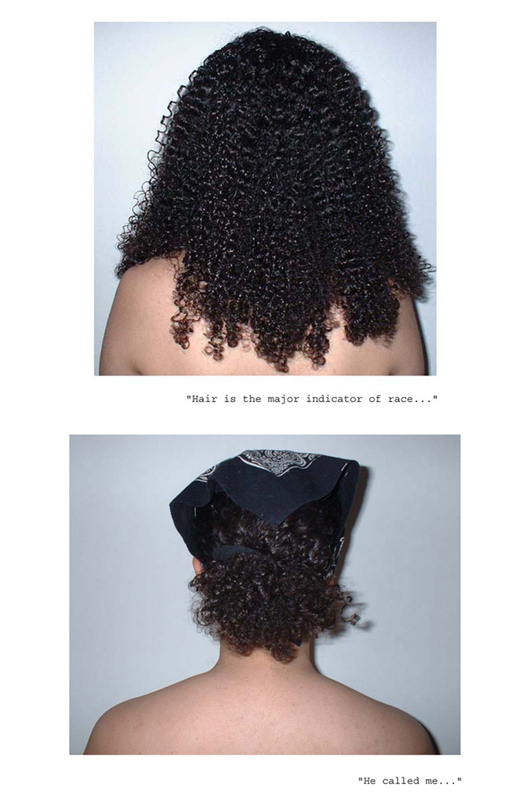 For this project, I wanted to appropriate Carrie Mae Weems use of photographic image and text to create dialogue around race and representation, more specifically the perpetuation of racial stereotypes based on my skin and hair. I wanted to raise questions about our perceptions of ‘blackness’ through the use of my body. In these photographs, my body becomes a site of projected questions, assumptions, and stereotypes.